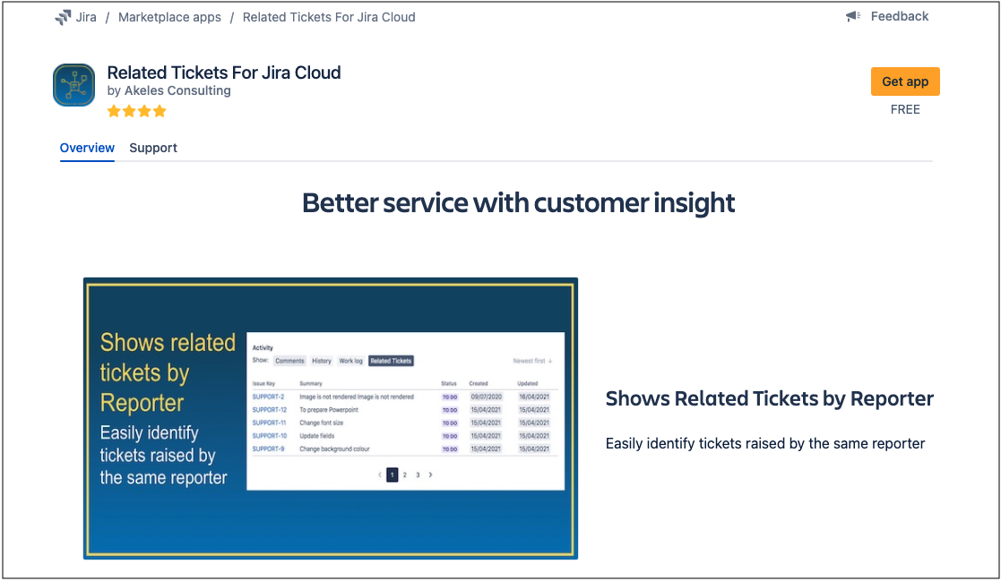 Open the Atlassian Marketplace and search for "Related Tickets for Jira Cloud".
