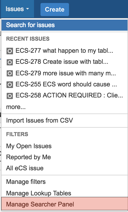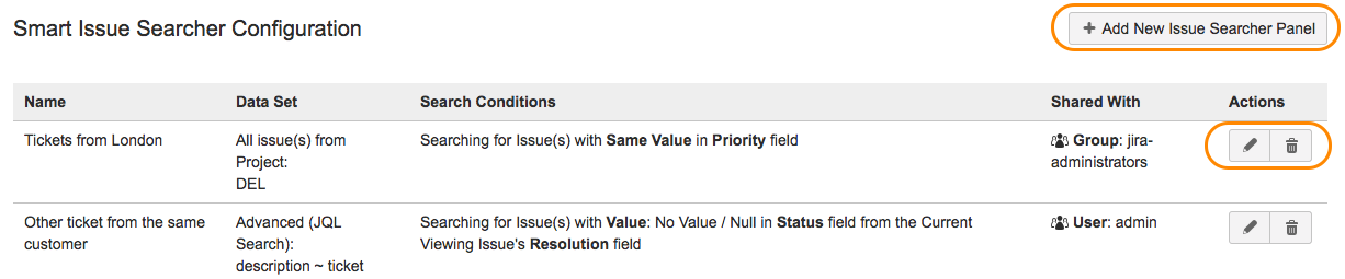 - Click on to the 'Add New Issue Searcher Panel' to start adding your searcher panel. Alternatively, you can also manage your existing panel by editing or deleting the panel by click on the button beside the panel.