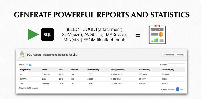 - Generate information and statistics using SQL (JRASERVER-10455)