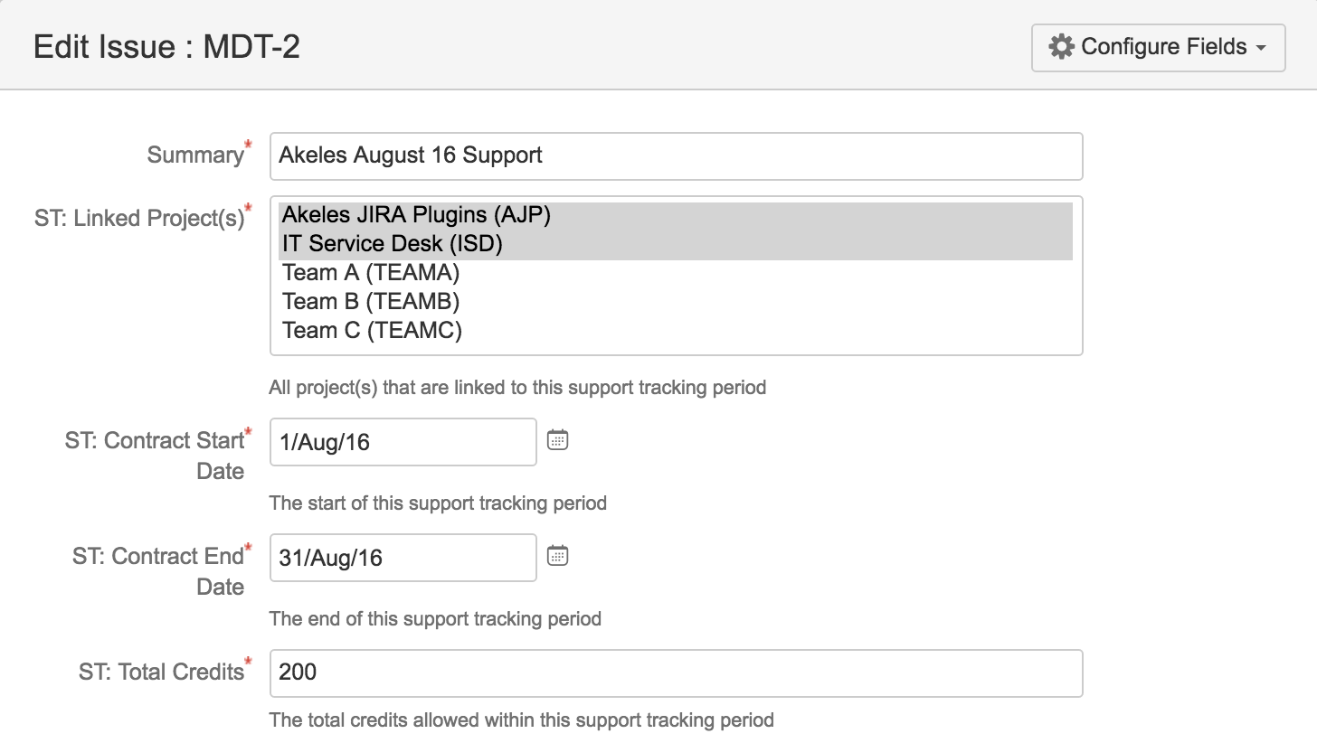 - This selection list will be empty if the current Non Support Tracker project is not a ST: Linked Project(s) in any Support Tracker Issue