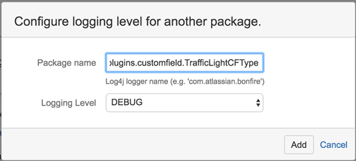 Add the Package name of the plugin (as advised by our support team) and set the Logging Level to DEBUG