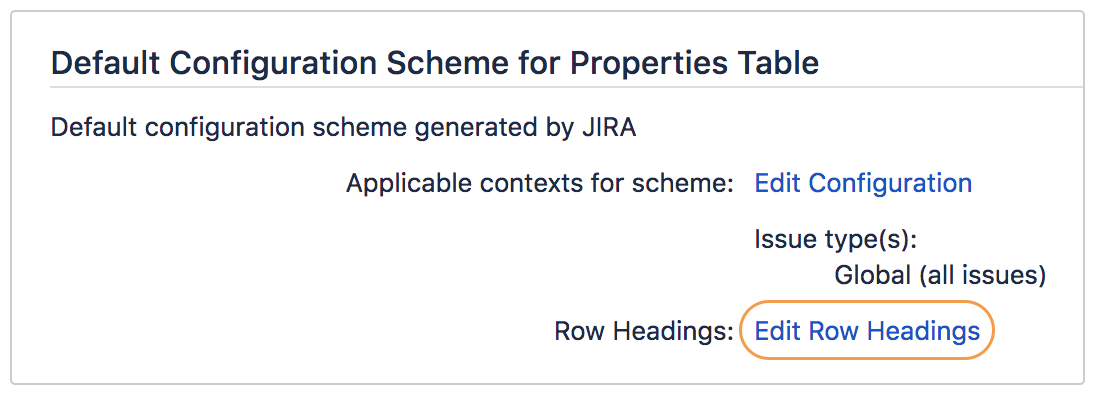 For Properties Table Custom Field, click Edit Row Headings.