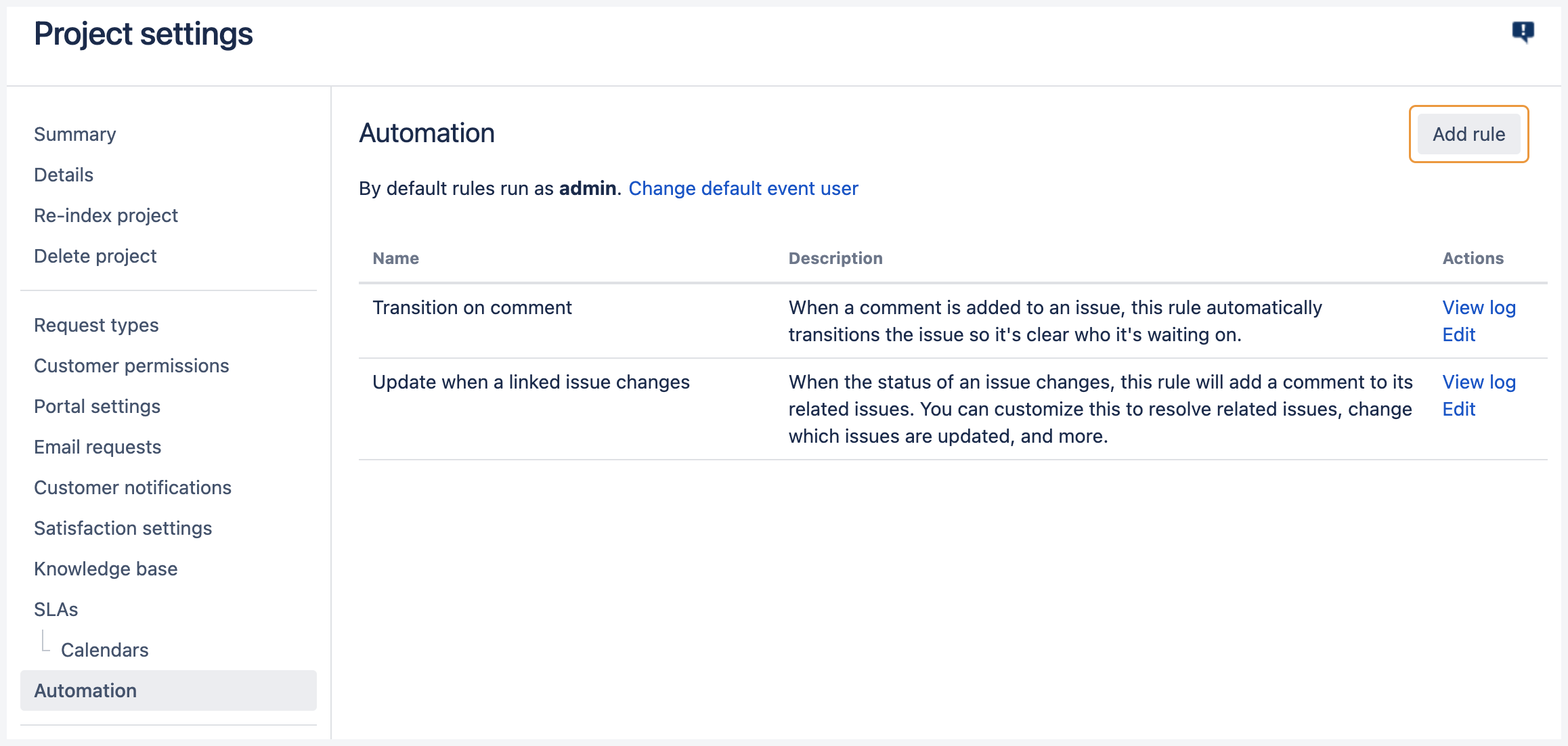 1. Go to your service project → Project Settings → Automation, then click 'Add rule'.