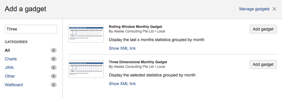 - Enter "Roll Window Monehtly Gadget" in the search box to filter the matching gadget