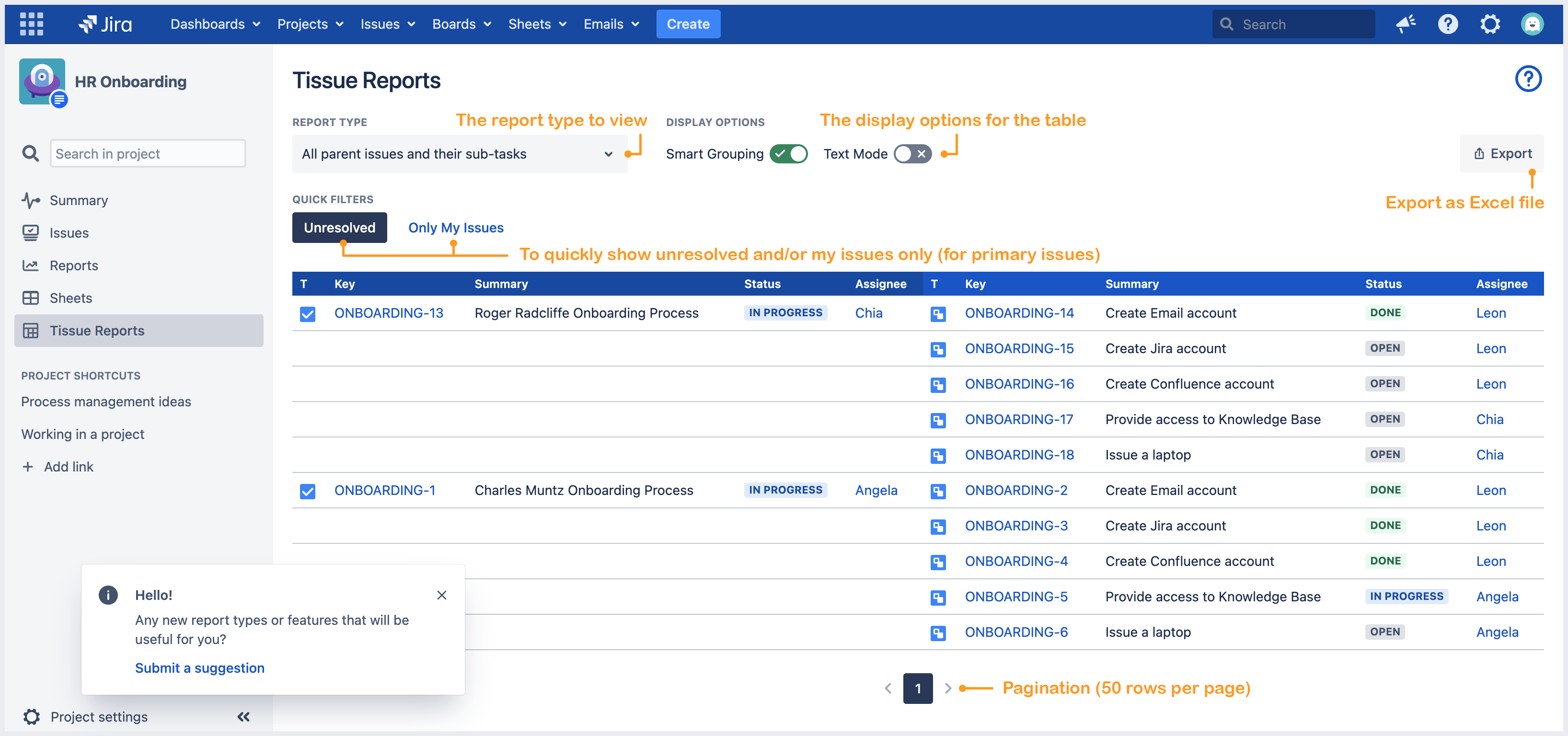 We can add more types of reports based on your feedback. You can let us know via our Jira Service Desk.