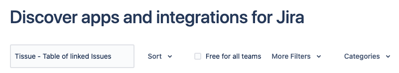 Open the Atlassian Marketplace and search for "Tissue - Table of linked Issues".