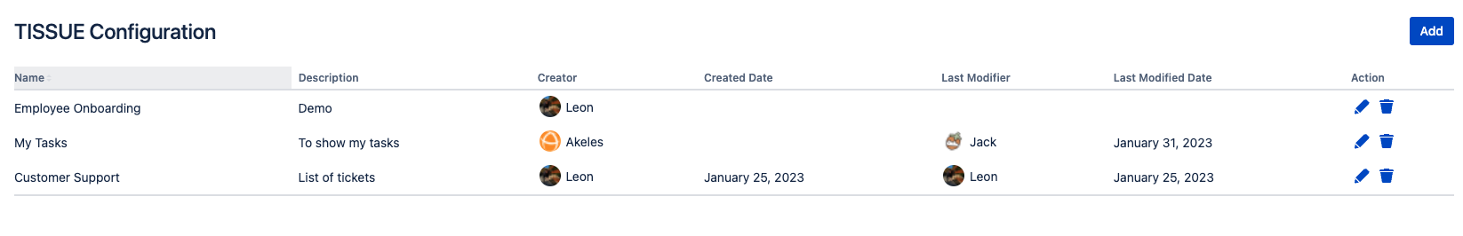 For existing configurations, the Created Date, Last Modified and Last Modified Date will display as blank.